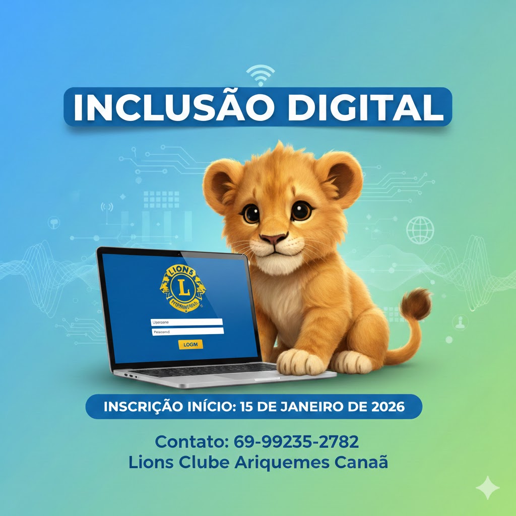 O Lions Clube Ariquemes Canaã, em parceria com a CrediSIS CrediAri, está com inscrições abertas para o Projeto Inclusão Digital, iniciativa que tem como objetivo ampliar o acesso à tecnologia e promover a capacitação de jovens por meio de cursos de informática.